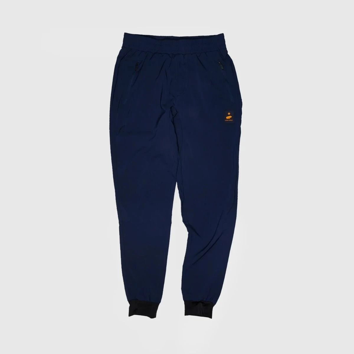 Die Karhu x SAYSKY Pace Pants ist eine lässige Laufhose in Marineblau. Die Hose wurde entwickelt, um beim Laufen schnell zu sein und dabei cool auszusehen. Es ist eine Unisex-Hose mit einer schmalen Passform von den Knien bis zu den Knöchelbündchen. Die Hose hat seitliche Reißverschlüsse, eine Gesäßtasche und einen elastischen Bund. Auf der Vorderseite befindet sich ein gewebtes Karhu x SAYSKY Label und auf der Rückseite ein reflektierendes Logo in Silber.