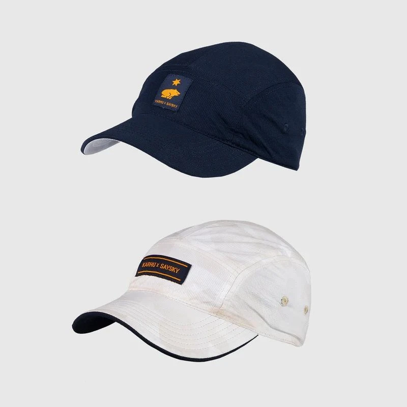 Die SAYSKY Reverse Cap ist eine wendbare 5-Panel-Mütze, die für das Laufen gemacht ist. Sie ist aus recyceltem Polyester hergestellt. Eine Seite hat einen blauen Polkadot-Print und die andere Seite ist blau.