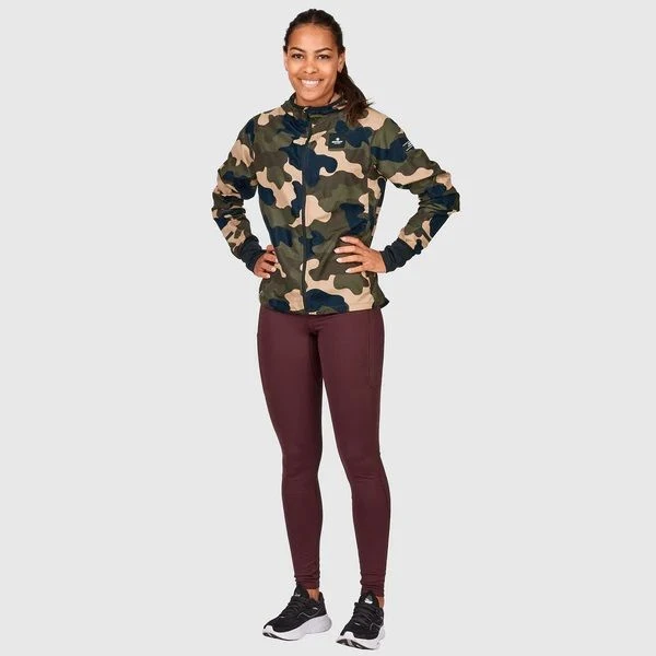 Die SAYSKY Camo Pace Jacket ist eine Laufjacke für Frauen, die dem Wind trotzen soll. Die Jacke kommt in einem Tarnmuster mit SAYSKY-Labels auf der Brust und dem Arm sowie einem SAYSKY Logo auf dem Rücken. Der leichte Stoff sorgt für eine bequeme Passform und gewährleistet eine hohe Atmungsaktivität für den Körper.