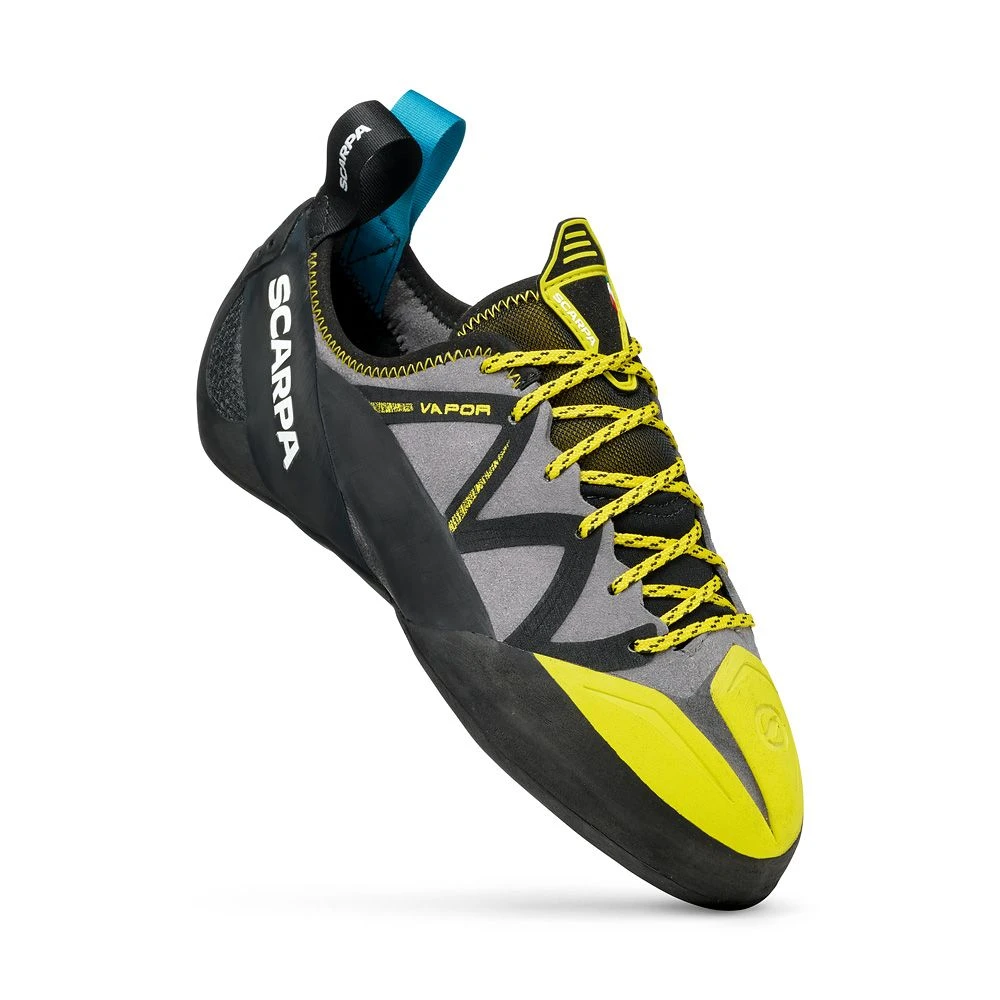 Der VAPOR von Scarpa bietet Kantenstabilität mit Vielseitigkeit für technische Routen. Der leichte Downturn und eine mittel bis stark angewinkelte Zehenbox ergeben einen ausgewogenen Schuh, der für alle Kletterstile eine hervorragende Performance bietet.